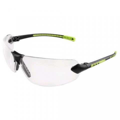 Polykarbonátové čiré brýle v moderním designu s pružnými postranicemi nezpůsobující tlak. Ochranné brýle jsou vhodné zejména při práci ve stavebnictví nebo skladech a jsou vhodné pro použití s přilbou či maskou. Možnost nastavení úhlu zorníku. Ochrana proti poškrábání, zamlžení a UV záření. Splňují normy EN 166 a EN 170.Ochranné brýle CXS Fossa s čirými skly