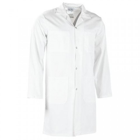 Pánský pracovní plášť z bavlny s dlouhými rukávy. Dvě velké přední kapsy pro uložení drobností. Rychlé zapínání a odepínání pomocí cvoků.Pánský bílý plášť Manutan Expert, bavlna
