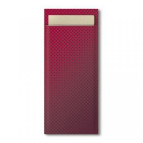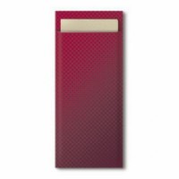Kapsička na příbory TORK Advanced s vloženým ubrouskem. Příbory lze vložit a připravit si již předem. Jednoduché vertikální skladování v držáku nebo koši. V okamžiku získáte harmonickou a stylovou dekoraci stolu. Příjemný a střídmý design se dá kombinovat s jinými ozdobnými prvky. Tork kapsička na příbory je ideální pro mnohé příležitosti, jako například pro snídaně, občerstvení v kavárnách, pro všechny gastronomické provozy s venkovním občerstvením, na terasách v hotelech i restauracích. Vysoce kvalitní a stylové.Papírová kapsička na příbory Tork burgundy s krémovým ubrouskem, 100ks