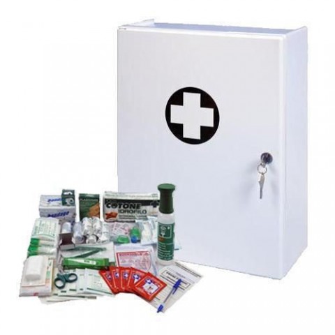 Plastová nástěnná lékárnička, uzamykatelná, 42 x 31 x 15 cm, s náplní VÝROBA