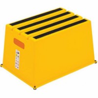 Široké pracovní podesty s gumovými patkami pro lepší stabilitu. Stupně jsou opatřeny abrazivními páskami snižujícími riziko pádu z podesty. Snadné přemisťování díky nízké váze a bočním úchytům.Plastové pracovní podesty, žluté - Manutan Expert
