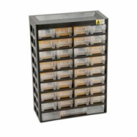 Plastový organizér se zásuvkami řady VarioPlus Basic pro uskladnění malých součástek např. šroubů, matek apod. Horní část organizéru vhodná např. pro odkládání nářadí. Zásuvky jsou zajištěny proti vypadnutí. Možnost čtyřbodové montáže na stěnu.Plastový organizér VarioPlus Basic 54, 33 zásuvek