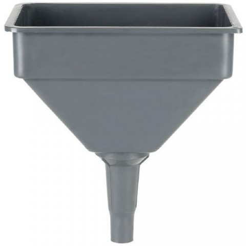 Čtvercový trychtýř s vyměnitelným mosazným sítem. Ochrana proti stříkající vodě díky širokému okraji. Vysoká odolnost vůči oleji, kyselinám a palivu. S rovným výtokovým hrdlem.Plastový trychtýř Pressol se sítem