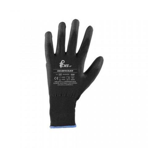 Povrstvené pracovní rukavice z polyesteru neobsahující silikon. Polyuretanová vrstva poskytuje nejvyšší odolnost proti propíchnutí.Polyesterové rukavice CXS polomáčené v polyuretanu, černé