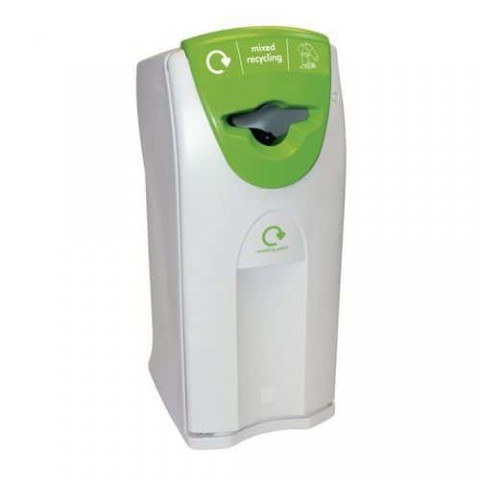 Maxi sběrač pro selektivní třídění z MDPE. Vybaven vkládacím otvorem ve tvaru křídla pro sběr směsného odpadu, držákem pytlů a dvířky na přední straně pro snadné vkládání a vyprazdňování pytlů. Upevnění k zemi nebo s integrovaným závažím.Popelnice Envirobin Maxi s otáčením 140 l – Vepabins