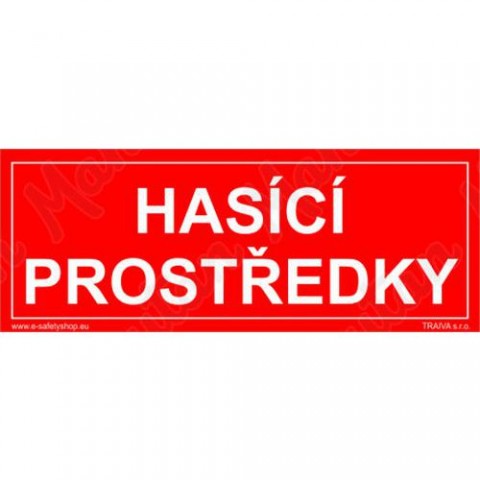 Bezpečnostní značka, tabulka nebo samolepka "Hasicí prostředky" je tištěna na vysoce kvalitním materiálu, barvami s vysokou odolností proti otěru a UV záření. Provedení plně odpovídá požadavkům právních a technických předpisů, zejména Nařízení vlády č. 375/2017 Sb., ČSN ISO 3864-1, ČSN ISO 3864-2, ČSN ISO 3864-3, ČSN ISO 3864-4. Používá se k označení místa, kde se nachází hasící prostředky. Může se doplnit symbolem nebo šipkou.Požární tabulky - Hasicí prostředky