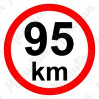 Tabulky, značky a samolepky "Omezení rychlosti – 95 km/hod" jsou tištěny na vysoce kvalitním materiálu, barvami s vysokou odolností proti otěru a UV záření. Provedení je plně v souladu s požadavky právních a technických předpisů, zejména Nařízení vlády č. 375/2017 Sb., ČSN ISO 3864-1, ČSN ISO 3864-2, ČSN ISO 3864-3, ČSN ISO 3864-4. Kvalitní samolepící reflexní značení nejvyšší povolené rychlosti vozidel. Je určeno pro vozidla kategorií M2, M3, N2, N3, O, OT, S . Podle vyhl. č. 341/2014 Sb musí mít na zádi karoserie v levé polovině vyznačenou nejvyšší povolenou rychlost z retroreflexního materiálu třídy 1 podle ČSN EN 12899-1. Není-li možno u přípojných vozidel kategorie O1, O2, R, vozidel kategorie S, jednonápravových traktorů s přívěsem a speciálních nosičů pracovních adaptérů umístit označení o průměru 200 mm, je přípustné použít označení o vnějším průměru 150 mm. Samolepka průměru 150 nebo 200 mm s označením nejvyšší povolené rychlosti v provedení z retroreflexní fólie třídy 1 dle ČPříkazové tabulky - Omezení rychlosti 95 km/h