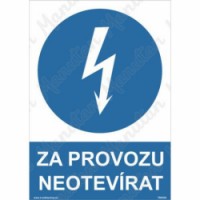 Tabulky, značky a samolepky "Za provozu neotvírat" jsou tištěny na vysoce kvalitním materiálu, barvami s vysokou odolností proti otěru a UV záření. Provedení je plně v souladu s požadavky právních a technických předpisů, zejména Nařízení vlády č. 375/2017 Sb., ČSN ISO 3864-1, ČSN ISO 3864-2, ČSN ISO 3864-3, ČSN ISO 3864-4.Příkazové tabulky - Za provozu neotvírat