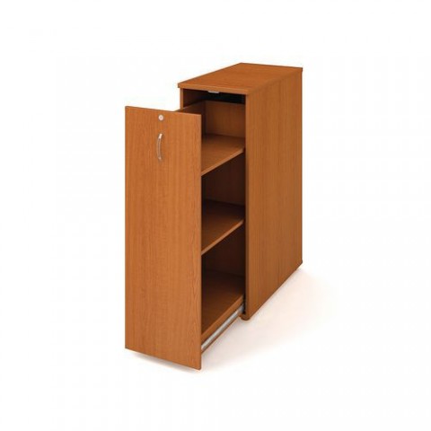 Přístavná kancelářská skříň ve třech barevných provedeních k psacím stolům, celovýsuvná se dvěma policemi a stěnou na levé straně. Centrální uzamykání. dezén: buk, ořech, třešeň rozměry v x š x h: 117,7 x 40 x 80 cm materiál: laminovaná dřevotříska počet polic: 2 nosnost police: 50 kg zámek: centrální provedení: výsuvné se dvěma policemi - levé provedení desky tloušťky 18 mm (horní deska, dno a boky) a 8 mm (záda), ABS hrany, dodáváno v demontovaném stavu (spojovací materiál součástí balení)Přístavbové střední skříně, 117,7 x 40 x 80 cm, výsuvné se dvěma policemi - levé provedení