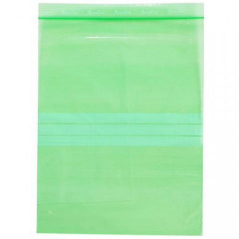 Recyklované sáčky s otevíráním a zavíráním na zip. Poskytují důležitou ochranu produktů a jejich izolací od prachu. Otvor pro zavěšení. Bílé pruhy pro označení obsahu sáčku.Recyklované uzavíratelné sáčky se zipem Manutan Expert, 50 mic, zelená, 100 ks