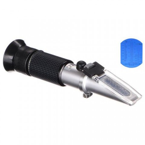 Kompaktní velikost přístroje Přístroj nepotřebuje žádnou baterii a nevyžaduje montáž Vysoká provozní spolehlivost a dlouhá životnost Malá odchylka a vysoká přesnost měření Tělo přístroje je z lehké a odolné speciální hliníkové slitiny Nevyžaduje prakticky žádnou údržbu Část přístroje je opatřena měkkým, pryžovým krytem Nabití akumulátoru Teplota tuhnutí chladící kapaliny Teplota tuhnutí kapaliny do ostřikovače Sada obsahuje pipetku a čistící hadřík 1.Pipetou naberte malé množství kapaliny. 2.Zdvihněte krycí destičku a naneste 2-3 kapky kapaliny na hranol přístroje. 3.Krycí destičku sklopte nazpět tak, aby se měřená kapalina rovnoměrně a bez bublin rozprostřela po ploše hranolu. 4.Po 30 sekundách nasměrujte krycí destičku na zdroj světla a podívejte se do okuláru. 5.Obraz je třeba zaostřit, pomocí zaostřovacího kroužku. A odečíst polohu přechodu světlo/stín na příslušné stupnici označující vlastnosti dané kapaliny. 1 ks refraktometr pro měření cukernatosti 1 ks praktické a mechanicky odRefraktometr na měření provozních kapalin automobilu, SIXTOL