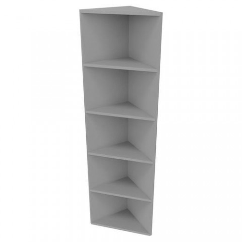 Rohová skříňka se čtyřmi policemi. barva: stříbrná rozměry v x š x h: 178 x 38 x 38 cm materiál: dřevotříska počet polic: 4 nosnost police: 17,5 kg provedení: rohové 2mm ABS hrany, desky tloušťky 25 mm (horní deska a police) a 19 mm (boční desky), dodáváno v demontovaném stavu (spojovací materiál součástí balení)Rohová vysoká skříň Classic line, 178 x 38 x 38 cm, otevřená
