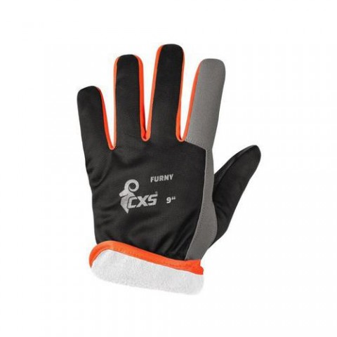 Kombinované mechanické rukavice s gumičkou v zápěstí. Plyšová podšívka pro komfort při nošení v zimě. Vyrobeny z kvalitních materiálů odolávajících srážení, natahování a tvrdnutí, velmi komfortní pro práci. Baleny s blistrem. Doporučené aplikace: logistika, hobby. Velikost: 09-11 Normy: EN ISO 21420, EN 388, EN 511 Sezóna: Zimní Svrchní materiál: Materiál: syntetická kůže, polyester, Materiál podšívky: plyšRukavice CXS FURNY W