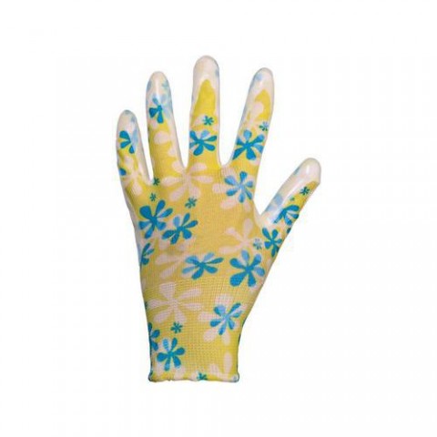 Rukavice s potiskem, dlaň a prsty máčené v nitrilu. Doporučené použití: zahrada, hobby. Velikost: 7, 8 Normy: EN 420 Materiálové složení: nylonový bezešvý úpletRukavice FIDO, máčené v nitrilu