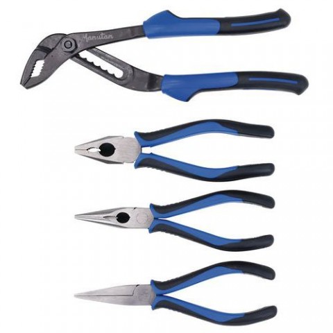 Sada čtyř kleští vyrobených z chrom-vanadové oceli. Délka 160 mm, siko kleště 250 mm.Sada kleští Manutan Expert, 4 ks