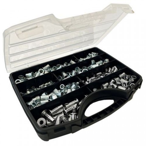 Sada obsahuje standardní ocelové nýty s plochou hlavou a se zmenšenou zapuštěnou hlavou. Jedná se o referenční řešení pro vícenásobně utahovací hvězdicové vložky, které lze použít nejen do plechu, ale také do křehkých materiálů, jako jsou plasty, kompozity a další.Sada nýtů Degometal Top Insert, 500 ks