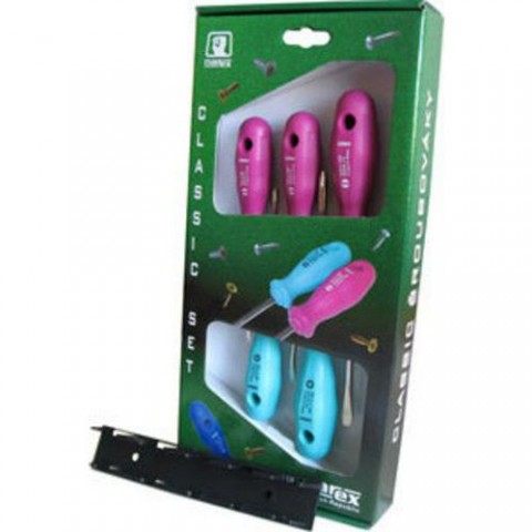 Praktická pětidílná sada šroubováků v maximální možné kvalitě. Určeno pro jednoduchou montáž a opravy v domácnostech. Speciální držák přiložený k sadě umožňuje zavěšení šroubováků na zeď. Dříky: zušlechtěná vysoce legovaná ocel, povrch niklován. Rukojetě: ergonomické s šestihranným průřezem, odolné vůči oleji a benzínu, tvar brání samovolnému pohybu při odložení. Obsah sady: 1x křížový šroubovák o rozměrech: PH0 x 80 mm. 1x křížový šroubovák o rozměrech: PH1 x 80 mm. 1x křížový šroubovák o rozměrech: PH2 x 100 mm. 1x křížový šroubovák o rozměrech: PH3 x 160 mm. 1x křížový šroubovák o rozměrech: PH4 x 160 mm.Sada šroubováků 5dílná PH CLASIC, NAREX 865200