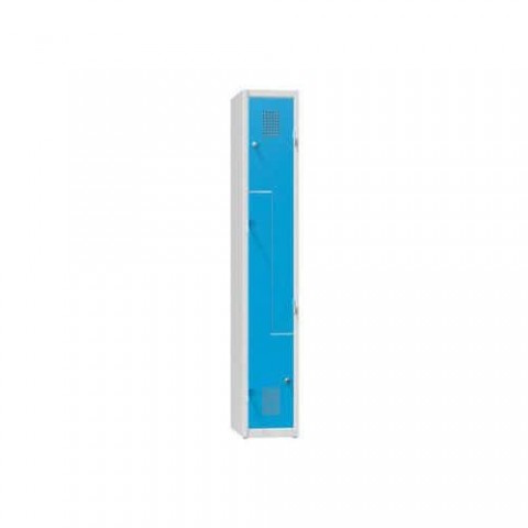Šatní skříně typu ZET jsou dostupné ve výšce 1850 mm, šatníky jsou standardně vybaveny cylindrickým zámkem, dvěma klíči a třemi plastovými háčky. Plechové šatní skříně pro úsporu místa. Cylindrický zámek se dvěma klíči.Šatní skříňky kovové Z 2-dvířkové, 300 x 500 x 1850 mm