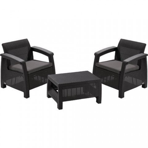 Zahradní nábytek pro posezení do zahrady, na terasy nebo do interiéru. Vyrobeno z lisovaného plastu v imitaci přírodního ratanu. Jednoduchá montáž a údržba.Sedací soupravy Corfu Weekend
