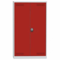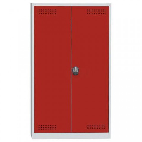Skříně slouží k uložení chemických látek ve vlastním obalu. Uložené kapaliny stojí na roštu a tím nezmenšují záchytný objem polic. Skříň obsahuje 4 záchytné police s roštem o záchytném objemu 19 l na polici a spodní záchytnou vanu bez roštu o objemu 20 l. Dvoubodové uzamykání cylindrickým zámkem na klíč. Vyztužené dveře s větracími otvory uložené na vnitřních čepech lze otevřít do úhlu 110°. Vnitřní strana dveří opatřena přihrádkou pro dokumenty k uloženým kapalinám. Povrchová úprava konstrukce práškovým lakem v barvě RAL.Skříně na uskladnění kapalin, 1950 x 1200 x 500 mm