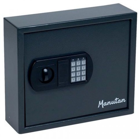 Ocelová skříňka na klíče v hranatém provedení s 60 háčky. Vysokou bezpečnost zajišťuje zámek na kód a klíč. Dodáváno včetně barevných klíčenek.Skříňka na klíče Manutan Expert s elektronickým zámkem, 60 háčků