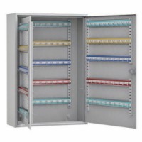 Ocelová klíčová schránka s elektronickým zámkem. Umístění lišt s háčky není fixní. materiál: ocelový plech dodáváno bez klíčenek způsob uchycení: pro upevnění na stěnu zámek: elektronický počet háčků: 200 barva: šedá rozměry: 550 x 380 x 145 mm umístění lišt s háčky lze měnitSkříňka na klíče s elektronickým zámkem, 200 háčků