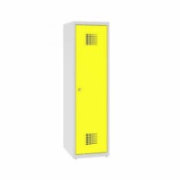 Svařované šatní skříně se sníženou výškou. Vhodné do škol pro žáky prvního stupně. Vyrobeny z ocelového plechu s povrchovou úpravou práškovým lakem. Skříně jsou vybaveny dvěma policemi na knihy, policí na boty a součástí jsou také 2 háčky na oblečení a samolepící jmenovka na dveřích. Větrací mřížky ve dveřích, úhel otevření dveří s bezpečnostní pojistkou max. na 90°, samolepicí štítek na jméno, možnost dokoupení horního šikmého nástavce. Uzamykání cylindrickým tříbodovým zámkem.Snížené školní šatní skříně, 1 sloupec, 400 mm, tříbodový cylindrický zámek