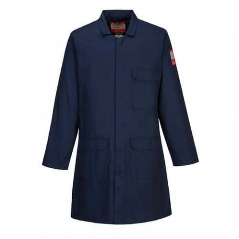 Nehořlavý kabát určený k nošení na nehořlavých oděvech. Je vyrobena z pohodlné, lehké a vysoce inovativní keprové látky odolné proti ohni., Ochrana proti sálavému, konvekčnímu a kontaktnímu teplu Lehké pro větší pohodlí při nošení 3 kapsy pro uložení věcí Uspořádání pro tužky na levé kapse Skrytá přední část pro snadný přístup Lehké a pohodlné CE certifikace Tkanina s hodnocením UPF 40+ k blokování 98% UV paprsků CE-KAT III Označeno UKCAStandardní kabát FR, tmavě modrá