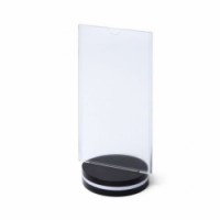 Pultový prezentační stojánek z plastu. Podstavec ve tvaru kruhu. Vhodný jako stojánek na menu do restaurací. Stojánek je standardně dodáván bez potisku.Stojánek na letáky, oboustranný, 20 x 10 cm