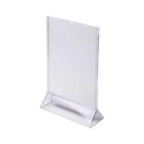 Pultové prezentační stojánky tvaru Y z plastu. Vhodné jako stojánek na menu do restaurací. Orientované na výšku. Dvoustranný pohled. Stojánek je standardně dodáván bez potisku.Stojánky na letáky JD5, typ Y na výšku