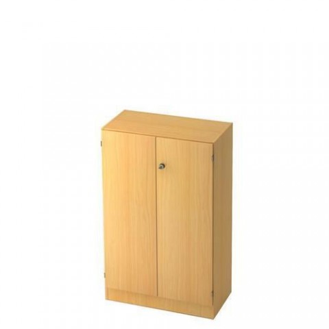 Kancelářské skříně se dvěma policemi a dvířky se zámkem. dezén: buk, světle šedá rozměry v x š x h: 127 x 80 x 40 cm materiál: laminovaná dřevotříska počet polic: 4 nosnost police: 25 kg zámek: ano provedení: s dvířky desky tloušťky 19 mm, dodáváno v demontovaném stavu (spojovací materiál součástí balení)Střední široké skříně Nomeris, 127 x 80 x 40 cm, s dvířky
