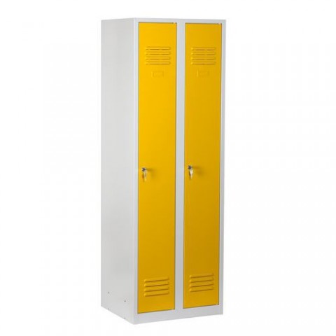 Nejdostupnější svařované šatní skříně s rozšířenými možnostmi příslušenství skládající se ze dvou samostatně uzamykatelných oddílů. Bezpečnost zvyšuje zejména vyztužení dveří po celé délce, a to včetně rámu, a perforace dveří, kterými nelze pohlédnout dovnitř. Šatník z ocelového plechu tloušťky 0,6 mm. Ú??inné odvádění vlhkosti z oděvů větracími otvory na dveřích a zadní části. Dveře jsou uloženy na vnitřních otočných pantech.Svařované šatní skříně DURO VARIO, 2 oddíly