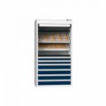 Svařované šatní skříně skládající se ze tří samostatně uzamykatelných oddílů. Šatník z ocelového plechu tloušťky 0,7 mm. Odvádění vlhkosti perforacemi na zadní straně skříně. Dveře jsou uloženy na vnějších otočných pantech. Plastové dorazy snižující hluk při zavírání.Svařované šatní skříně Manutan Expert, 3 oddíly, cylindrický zámek