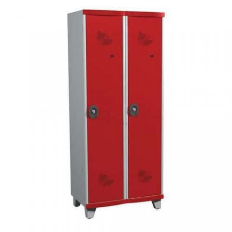 Svařovaná šatní skříň z odolného profilovaného ocelového plechu o tloušťce 0,6 mm (odpovídá 0,8 mm standardnímu). Každý oddíl je vertikálně rozdělen mezistěnou umožňující odložení čistých a špinavých oděvů. Zaoblené rohy pro větší bezpečnost uživatele. Odolná dvířka se otevírají až do úhlu 180°. Perforace ve dveřích i konstrukci skříně pro lepší odvod vlhkosti. Možnost umístění štítku se jménem. Uzamykání cylindrickým zámkem se dvěma klíči.Svařované šatní skříně s mezistěnou Acial, 2 oddíly, 400 mm, na nohách, cylindrický zámek