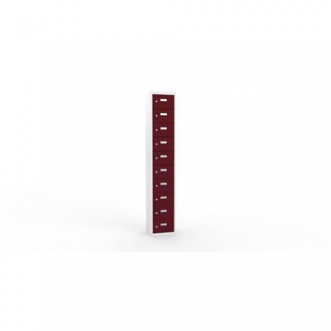 Skříně ze svařovaného plechu s malými schránkami na uložení osobních věcí. Vhodné do kantýny, posiloven, fitness center, bazenů nebo recepce hotelů. Jednotlivé schránky jsou samostatně uzamykatelné cylindrickým zámkem na klíč. Možnost vložení štítku se jménem nebo číslem na dvířka každé schránky.Svařované skříně na osobní věci Ron I, 10 boxů, cylindrický zámek