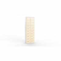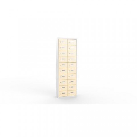 Skříně ze svařovaného plechu s malými schránkami na uložení osobních věcí. Vhodné do kantýny, posiloven, fitness center, bazenů nebo recepce hotelů. Jednotlivé schránky jsou samostatně uzamykatelné cylindrickým zámkem na klíč. Možnost vložení štítku se jménem nebo číslem na dvířka každé schránky.Svařované skříně na osobní věci Ron I, 20 boxů, cylindrický zámek