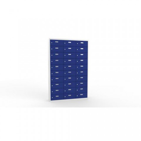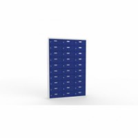 Skříně ze svařovaného plechu s malými schránkami na uložení osobních věcí. Vhodné do kantýny, posiloven, fitness center, bazenů nebo recepce hotelů. Jednotlivé schránky jsou samostatně uzamykatelné cylindrickým zámkem na klíč. Možnost vložení štítku se jménem nebo číslem na dvířka každé schránky.Svařované skříně na osobní věci Ron II, 30 boxů, cylindrický zámek