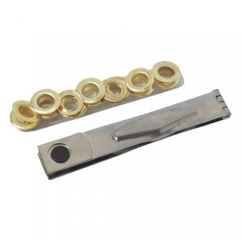 Lisovací kleště s raznicí + náhradní oka k plachtám 10ks. Vnitřní průměr oka cca 12mm. Každé oko je složené ze dvou částí. Obě části oka vložte do raznice a sklepněte do sebe.TOPTRADE kleště lisovací, pro krycí plachty,150 mm, balení 12 ks