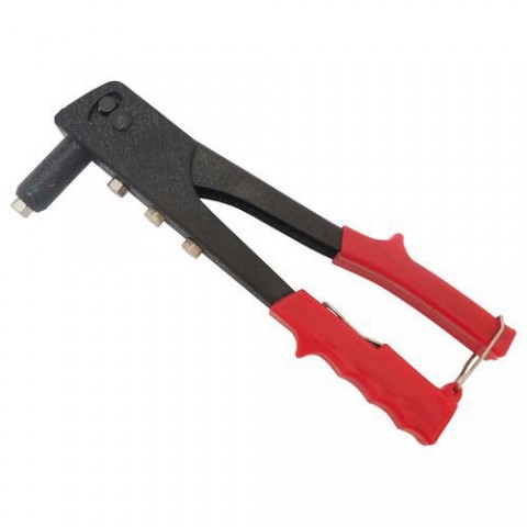 Nýtovací kleště na hliníkové a ocelové nýty. Úhel nýtovací hlavice 90°. 4 vyměnitelné koncovky pro průměr nýtu 2, 3, 4 a 5 mm. Koncovky jsou zašroubovány v rukojeti kleští. Klíč na výměnu koncovek je součástí balení a je zasunut do rukojeti.TOPTRADE kleště nýtovací, celokovové