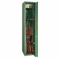 Trezorová skříň s pěti držáky na zbraně. Součástí jsou držáky na nářadí pro čištění zbraní a vnitřní sejf se samostatným zámkem. Klíč není možno vytáhnout, pokud skříň není uzamčená. zámek: mechanický počet zbraní: 5 max. výška zbraně: 129 cm vnější rozměry v x š x h: 145 x 30 x 34 cm vnitřní rozměry v x š x h: 144,4 x 29,4 x 27 cm objem: 115 l schránka: ano výška schránky: 15 cm barva: zelená RAL 6020 hmotnost: 44 kg 2 klíče součásti balení, možnost ukotvení ke stěněTrezor na zbraně Montana-5