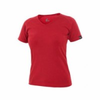 Dámské tričko s průkrčníkem do V. Krátký rukáv raglánového typu. Střih zvýrazňující dámskou postavu a elastan pro pružnost a dlouhodobé udržení tvaru. Finální silikonová úprava materiálu, která zajišťuje vyšší měkkost, rozměrovou stálost a omezuje žmolkovatění. Saténová etiketa. Vhodné pro potisk a výšivku. Velikost: XS-XXLTričko ELLA, dámské, červené