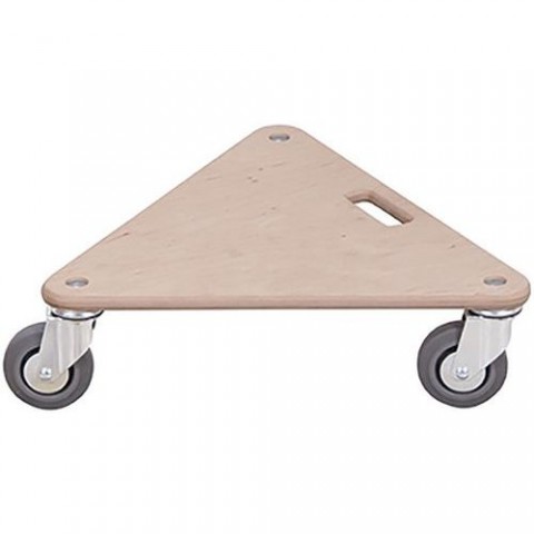 Trojhranná přepravní plošina s otočnými koly z termoplastické pryže na plastovém ráfku s kuličkovými ložisky. Běhoun kola nezanechává stopy na podlaze. Plošina je vyrobená z dřevěné překližky a opatřená úchytem pro rychlé přemístění.Trojúhelníková přepravní plošina PL05, do 300 kg, 54 x 54 x 14,5 cm, termoplastická kola