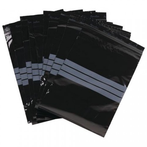 Černé polyetylenové sáčky s uzavíráním na zip. Bílé pruhy pro označení obsahu sáčku.Uzavíratelné sáčky se zipem Manutan Expert, černé, 100 ks