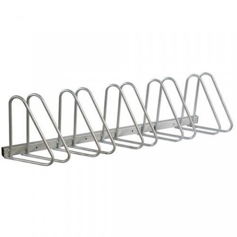 Sada 2 stojanů na kola s šikmým stáním pro všechny typy kol a šířky plášťů do 63 mm. Široká mezera mezi jednotlivými stojany zabraňuje kontaktu řídítek a chrání před poškrábáním. Povrchová úprava pozinkováním. Stojan je opatřen otvory k ukotvení.Venkovní nástěnný stojan na kola Maurice, pro 5 kol