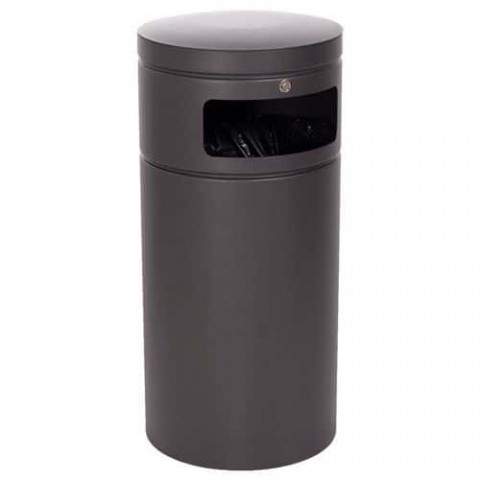 Elegantní kulatý odpadkový koš pro venkovní použití z vysoce kvalitní pozinkované oceli. Vybaven velkým vkládacím otvorem. Robustní víko se zámkem a opěrnými kroužky pro snadné vyprazdňování a rychlou výměnu vložky. Možnost ukotvení do země.Venkovní odpadkový koš Bica 5071 75 l