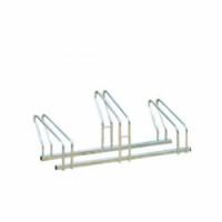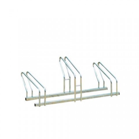 Stojan na kola vhodný pro všechny typy kol a šířky plášťů do 55 mm. Rozdílná výška stání zabraňuje kontaktu řídítek a chrání před poškrábáním. Povrchová úprava galvanickým zinkováním. Stojan je opatřen otvory k ukotvení.Venkovní stojan na kola Fausto, pro 3 kola