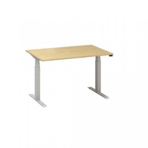 Výškově nastavitelné kancelářské stoly v rovném provedení. Deska z laminované dřevotřísky tl. 25 mm s 2mm ABS hranami. Dezén desky z divoké hrušky, třešně, buku nebo bílé barvy. Podnoží stolu v šedostříbrném provedení (RAL9022) je složeno ze tří segmentů. Zvedání zajišťují dva výkonné elektromotory. Dodáváno v demontovaném stavu.Výškově nastavitelné kancelářské stoly Alfa Up s šedým podnožím, 120 x 80 x 61,5-127,5 cm