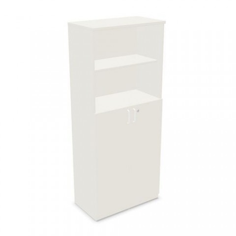 Vysoká kancelářská skříň s nikou a uzavíratelnou skříňkou v dolní části. Vyrobená z MFC desek tl. 18 mm, zadní strana tl. 12 mm a vrchní deska tl. 25 mm. Dveře s maximálním otevřením 110°, systém měkkého zavírání. Kovové bílé rukojeti. Možnost uzamčení cylindrickým zámkem.Vysoká kancelářská skříň NowyStyl ES Cabinet, s nikou a dvířky, 189,5 x 80 x 44,5 cm