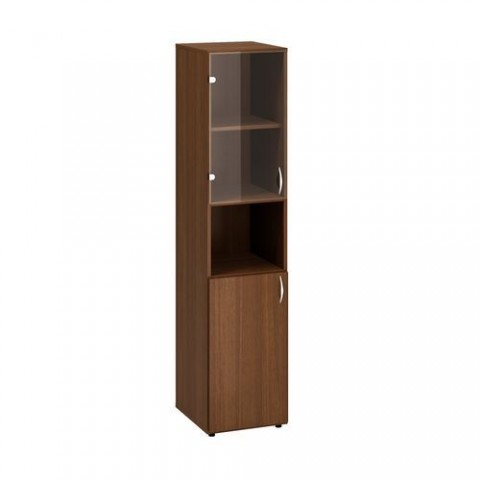 Vysoké kancelářské skříňky s kombinovanými dvířky a nikou ve čtyřech barevných provedeních. Vrchní a spodní části skříní jsou odděleny nikou. Korpusy jsou vyrobeny z laminované dřevotřísky tloušťky 18 mm s ABS hranou 1 mm. Záda skříní tvoří laminovaná dřevotříska o tloušťce 8 mm. Dřevěné police jsou upevněny kovovými trny, které zamezují jejich nežádoucímu vysunutí. Kancelářské skříně jsou vysoce odolné proti mechanickému poškození a disponují zvýšenou odolností vůči nadměrné vlhkosti. Pomocí aretačních šroubů umístěných ve dně korpusu lze vyrovnat nerovnosti podlahy a zajistit tak vyšší stabilitu skříňky. Skříně splňují normy ISO 9001, ISO 14001, ČSN 18001, Ekologicky šetrný výrobek.Vysoká úzká skříň Alfa 500, 178 x 40 x 47 cm, s nikou a kombinovanými dvířky - levé provedení