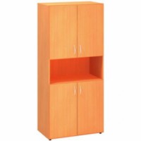 Skříňky v pěti barevných provedeních. Skříň se skládá ze dvou samostatně otevíracích oddílů. Spodní oddíl obsahuje jednu polici, vrchní oddíl obsahuje dvě police. Korpusy jsou vyrobeny z laminované dřevotřísky tloušťky 18 mm s ABS hranou 1 mm, dvířka mají ABS hranu 2 mm. Záda skříní tvoří laminovaná dřevotříska o tloušťce 8 mm. Dřevěné police jsou upevněny kovovými trny, které zamezují jejich nežádoucímu vysunutí. Kancelářské skříně jsou vysoce odolné proti mechanickému poškození a disponují zvýšenou odolností vůči nadměrné vlhkosti. Pomocí aretačních šroubů umístěných ve dně korpusu lze vyrovnat nerovnosti podlahy a zajistit tak vyšší stabilitu skříňky. Skříně splňují normy ISO 9001, ISO 14001, ČSN 18001, Ekologicky šetrný výrobek.Vysoké široké skříně Alfa 500, 178 x 80 x 47 cm, kombinované